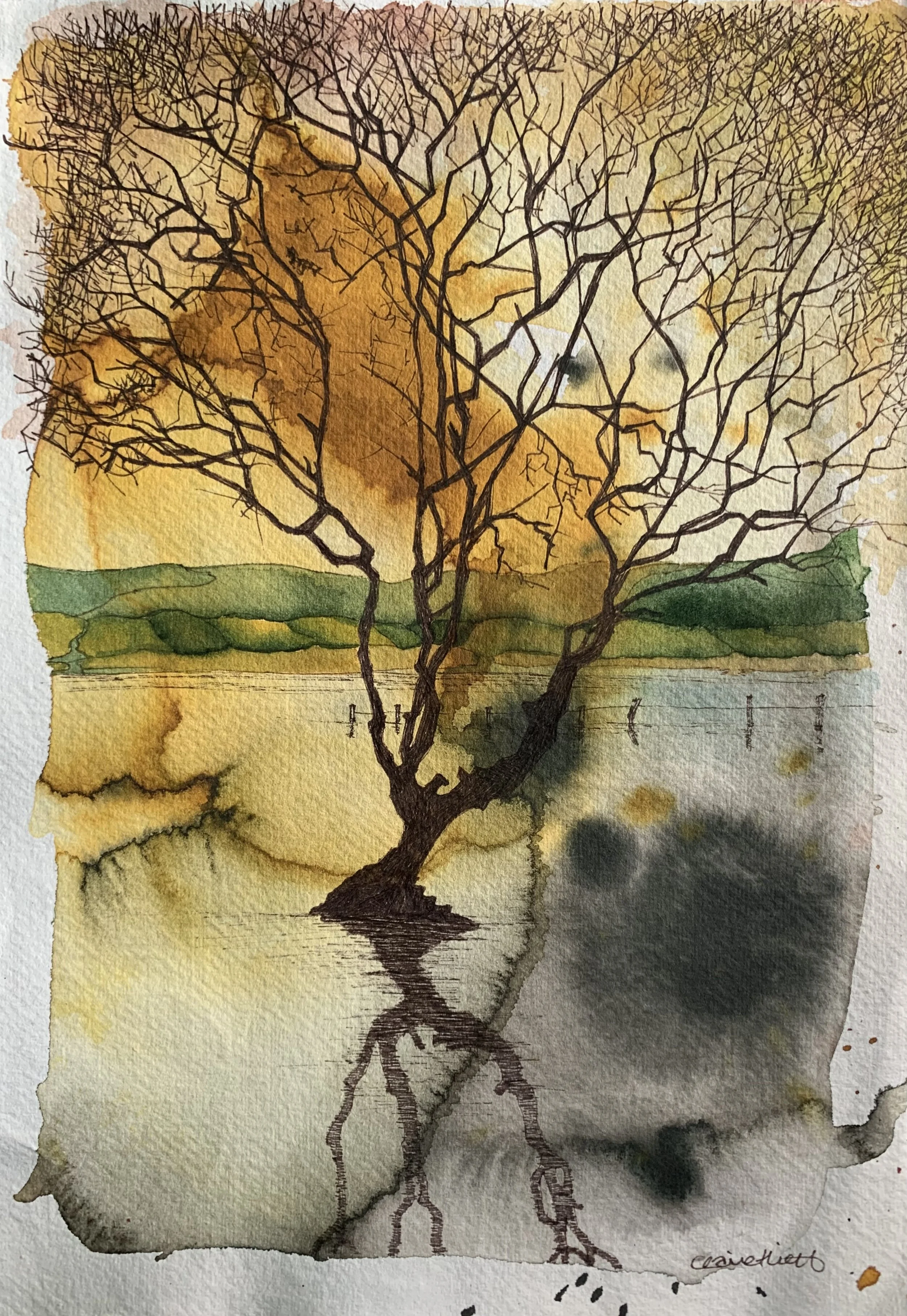 Pen, watercolour and Schmincke Aqua Drop on A4 Khadi handmade paper.